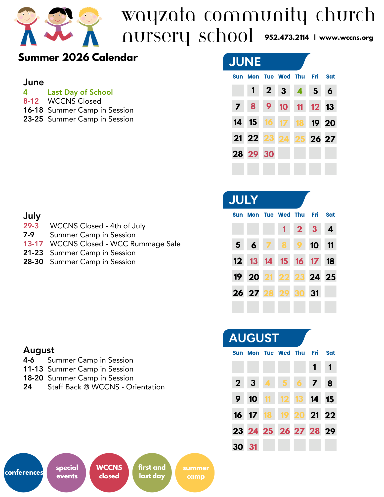 WCC Nursery School: 952-473-2114